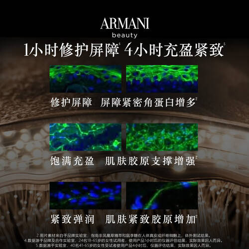 经过4小时的使用,肌肤能够感受到明显的充盈感与紧致度提升,细纹和皱纹的出现也会有所减轻。这使得阿玛尼黑钥匙修护面霜很适合初老肌肤的护理需求。